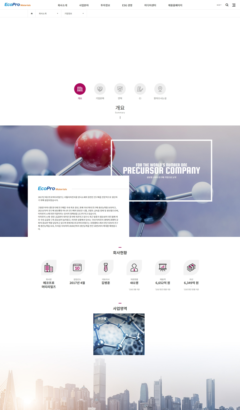 - 주요 사업: 고품질 전구체 생산, 차세대 양극재 소재 개발 및 연구