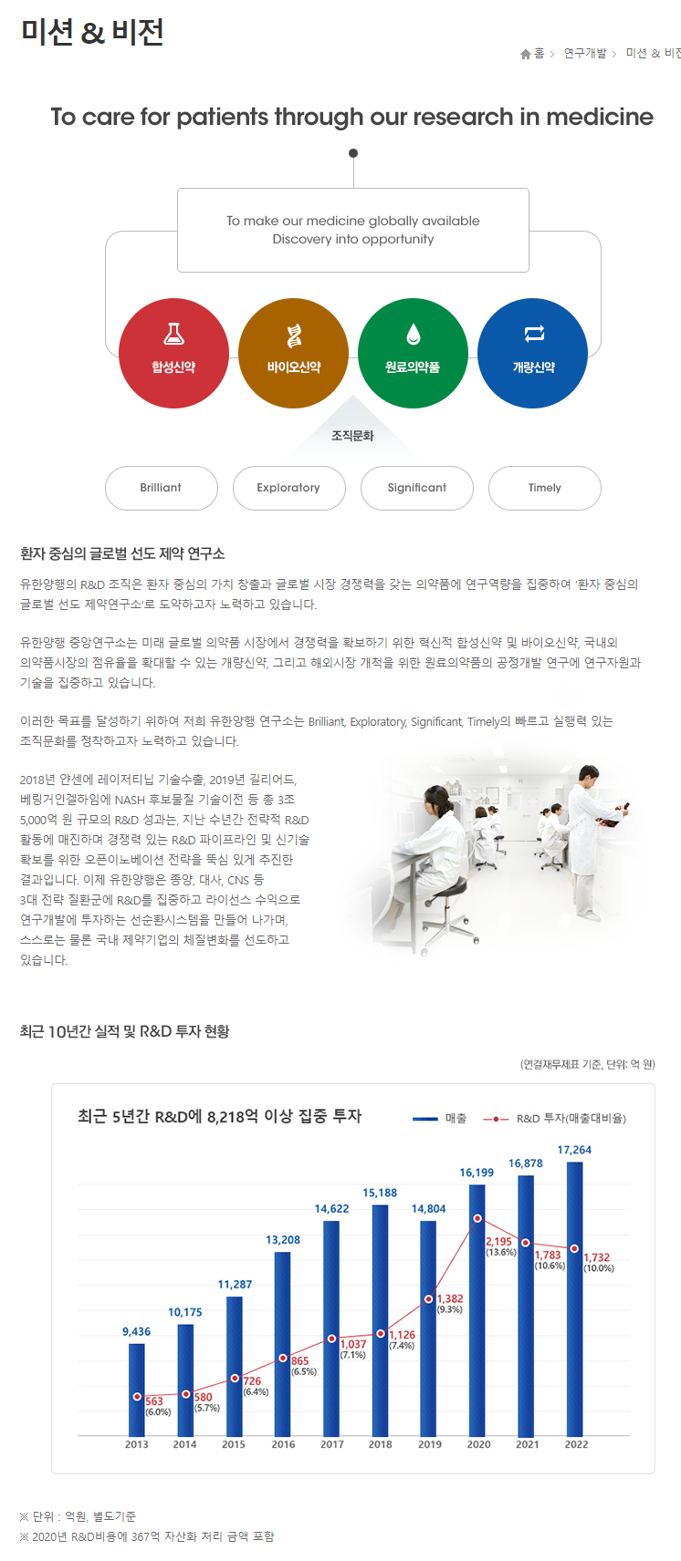 📈 유한양행 분석자료 (핵심가치, 비전, 인재상, 각종 사업 등)