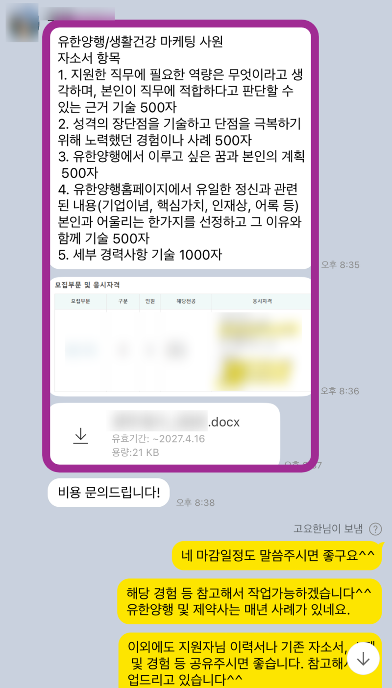 #자기소개서 #자소서 #자기소개서대필 #자소서대필 #자기소개서첨삭 #자소서첨삭 #취업컨설팅 #취업준비 #합격자소서 #대기업자소서 #신입자소서 #유한양행 #유한양행자소서 #유한양행채용 #마케팅직무 #자기소개서전문가 #취업성공 #서류합격 #첨삭전문가 #자기소개서의뢰 #취업고민 #기술직자소서#생산직자소서#채용공고#자소서예시#자소서대행#자기소개서대행#자소서항목#자기소개서문항#합격후기#이력서#경력기술서#직무수행계획서#연봉#자소서쓰는법#자기소개서쓰는법#사람인#잡코리아#자소설닷컴#자유양식