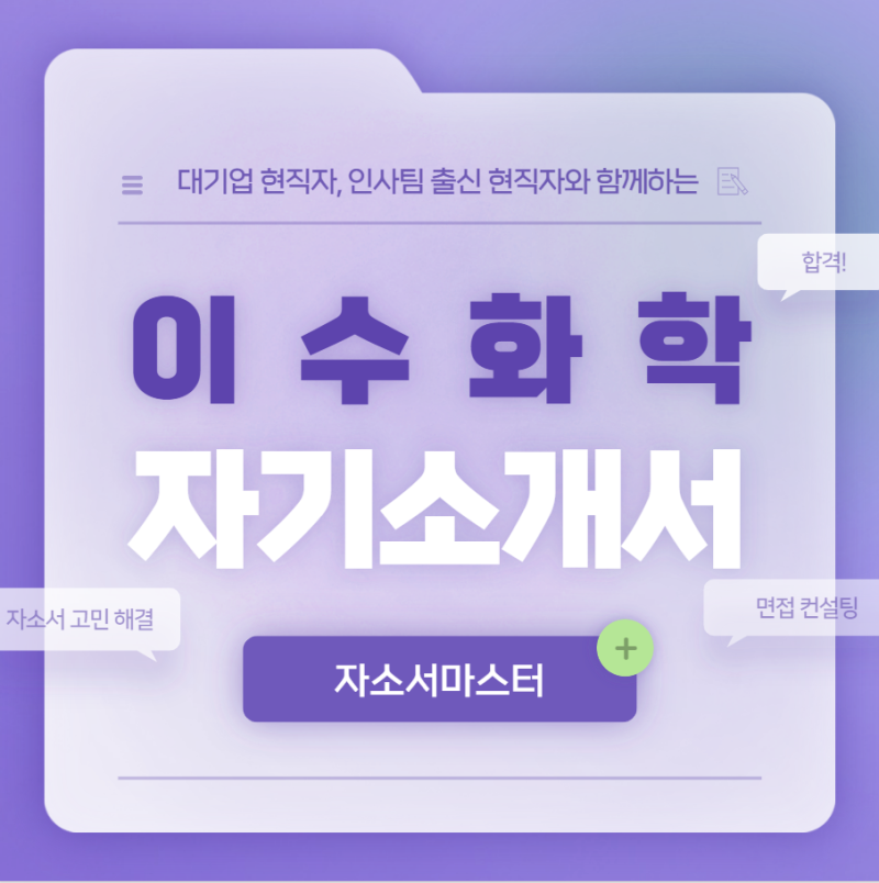 저는 단순한 글쓰기 전문가가 아니에요. 기업의 채용 프로세스에 대한 깊이 있는 이해도를 바탕으로, 인사 담당자들이 어떤 점을 중요하게 평가하는지, 그리고 어떻게 하면 지원자님의 진정성과 역량을 효과적으로 전달할 수 있는지 누구보다 잘 알고 있답니다! 🔍 매년 2000명 이상 컨설팅을 진행하며 쌓은 데이터와 노하우는 결코 무시할 수 없는 저만의 강력한 무기라고 할 수 있죠. 이수화학의 인재상과 직무 역량에 최적화된 자소서를 만들어드리는 데 집중했습니다! ✨ 저의 수백 건의 대기업, 공기업, 중견/중소기업, 공무직 합격 사례가 이 모든 것을 증명하고 있어요.