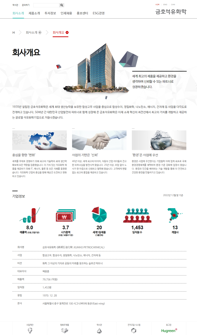 주요 사업: 합성고무, 합성수지, 정밀화학, 전자소재
