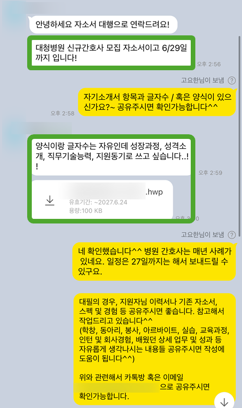 대청병원 간호사 채용 합격 자소서 작성법, 자기소개서 문항 첨삭 대필 후기