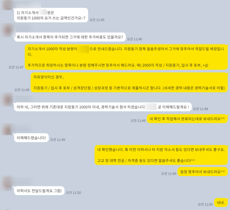 저의 1:1 자기소개서 첨삭/대행 상담 의뢰 과정은 이렇게 진행된답니다! 🧐
